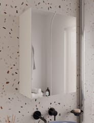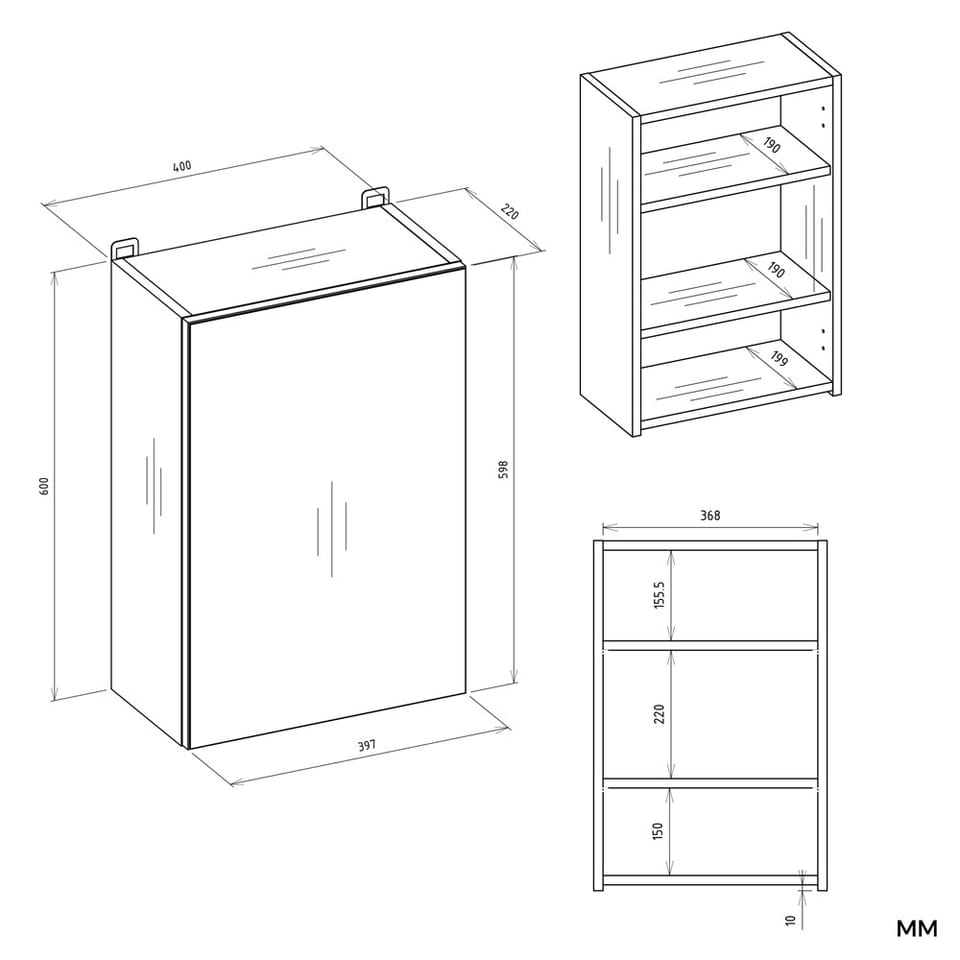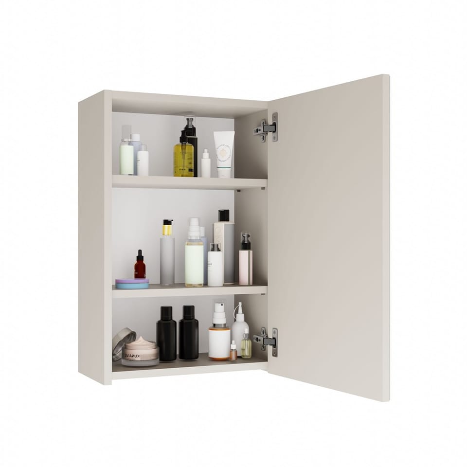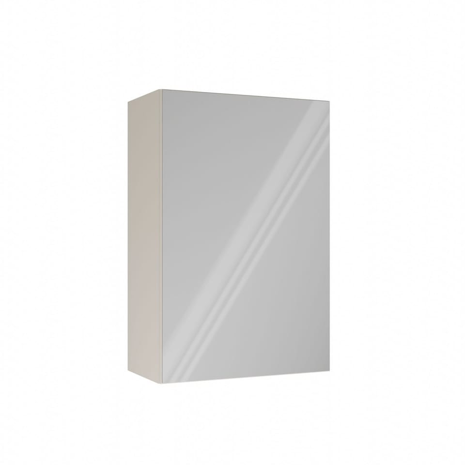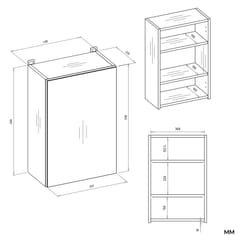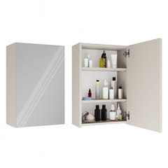 - Wyposażona w 3 praktyczne półki schowane za stylowymi drzwiczkami z lustrzanym frontem.