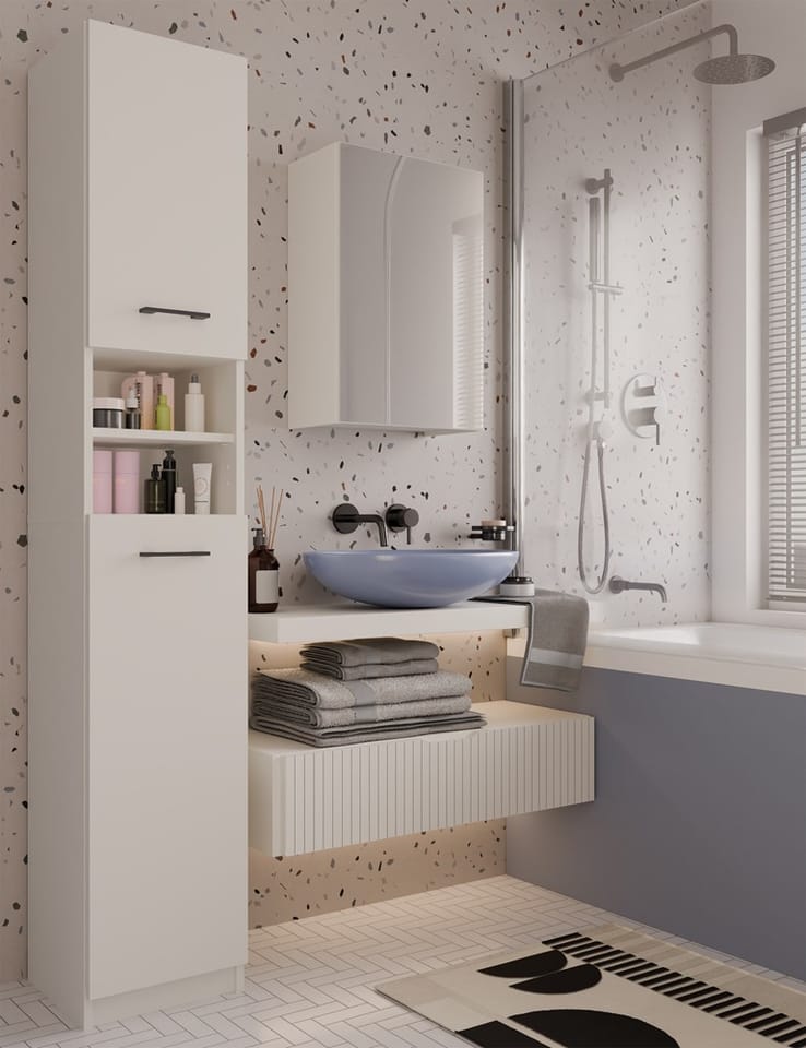 - Idealna do małych i średnich łazienek, doskonale zagospodarowuje przestrzeń nad umywalką.