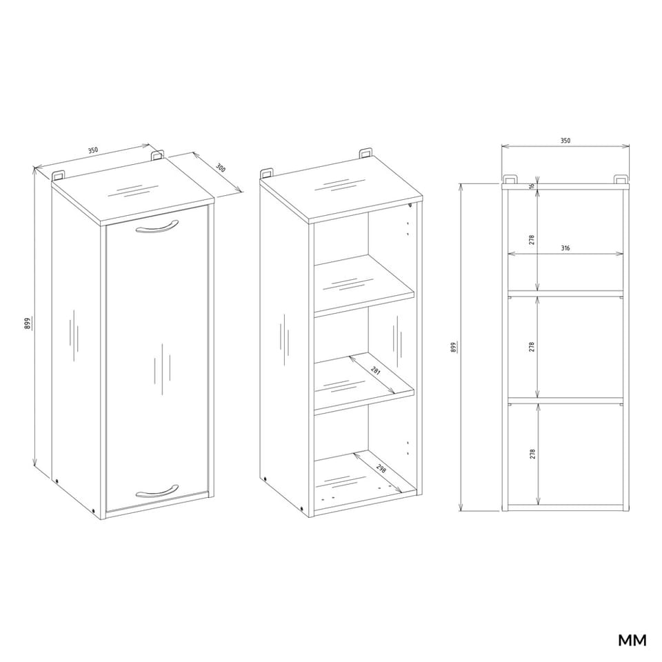 - Trzy praktyczne półki za drzwiami – pozwalają utrzymać porządek i wygodnie segregować przedmioty