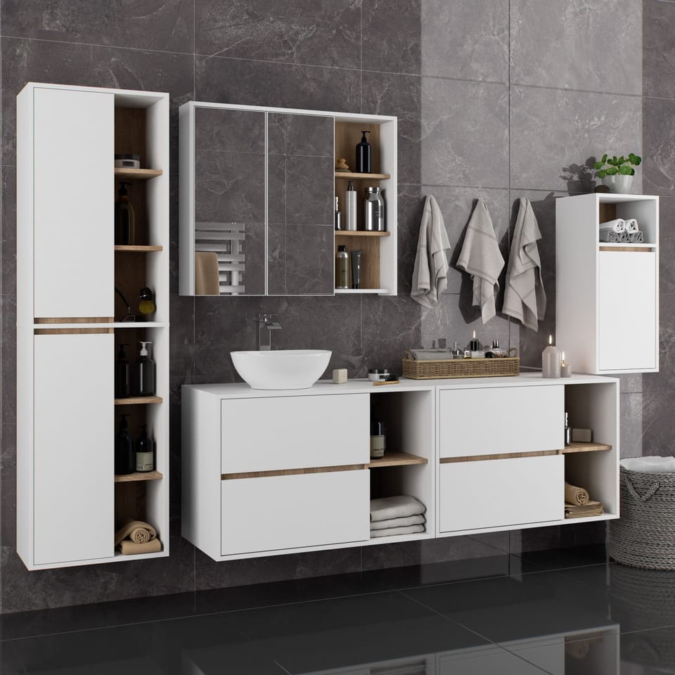 Szafki łazienkowe świetnie uzupełniają wyposażenie łazienki, zapewniając niezbędne miejsce na wszelkie kosmetyki i detergenty oraz nadając łazience określony styl. Pojemne szafki ułatwiają zachowanie porządku w pomieszczeniu, co korzystnie wpływa na estetykę wnętrza. Kolekcja VAMI wyróżnia się przykuwającą uwagę stylową kolorystyką – korpus oraz fronty mają taką samą barwę, natomiast kolor wewnętrzny jest inny.