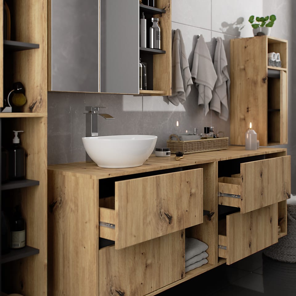 Szafki łazienkowe świetnie uzupełniają wyposażenie łazienki, zapewniając niezbędne miejsce na wszelkie kosmetyki i detergenty oraz nadając łazience określony styl. Pojemne szafki ułatwiają zachowanie porządku w pomieszczeniu, co korzystnie wpływa na estetykę wnętrza. Kolekcja VAMI wyróżnia się przykuwającą uwagę stylową kolorystyką – korpus oraz fronty mają taką samą barwę, natomiast kolor wewnętrzny jest inny.