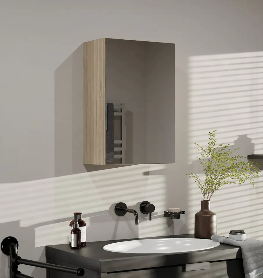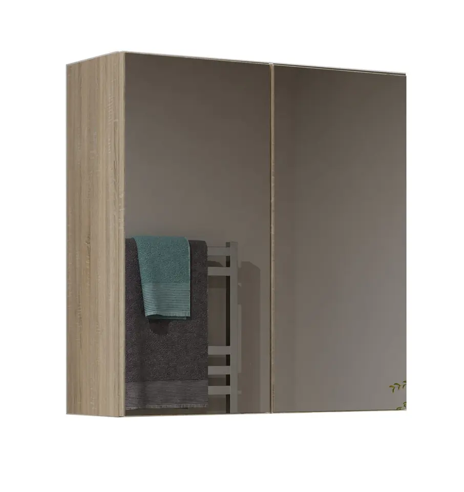 WYMIARY: Szerokość: 60 cm Wysokość: 60 cm Głębokość: 22 cm MATERIAŁ: Wysokiej jakości płyta wiórowa laminowana o grubości 16 mm Front drzwi: Ozdobne szklane lustro Łatwe w czyszczeniu: Wystarczy miękka ściereczka, unikać silnych środków chemicznych. W opakowaniu: Instrukcja montażu wraz ze wszystkimi potrzebnymi akcesoriami montażowymi. Meble są fabrycznie zapakowane do samodzielnego montażu. Informacja:Dokładamy wszelkich starań, aby kolory mebli prezentowane na zdjęciach były odwzorowane możliwie jak najdokładniej. Należy jednak pamiętać, że ich odbiór może się różnić w zależności od indywidualnych ustawień monitora lub ekranu (takich jak jasność, kontrast, temperatura barwowa czy technologia wyświetlania). Rzeczywisty odcień produktu może się także różnić w zależności od warunków oświetleniowych. Ewentualne różnice kolorystyczne nie wynikają z wady produktu.