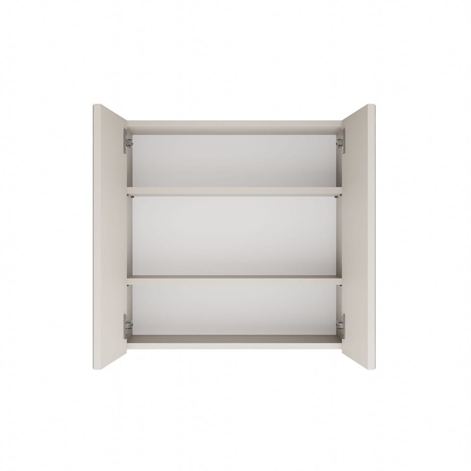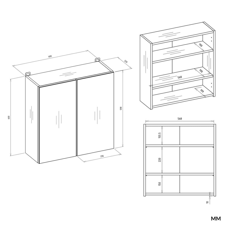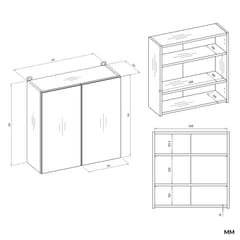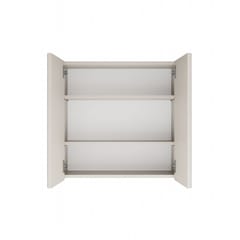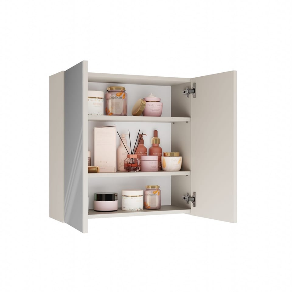 - Wyposażona w 3 praktyczne półki schowane za 2 stylowymi drzwiczkami z lustrzanym frontem.