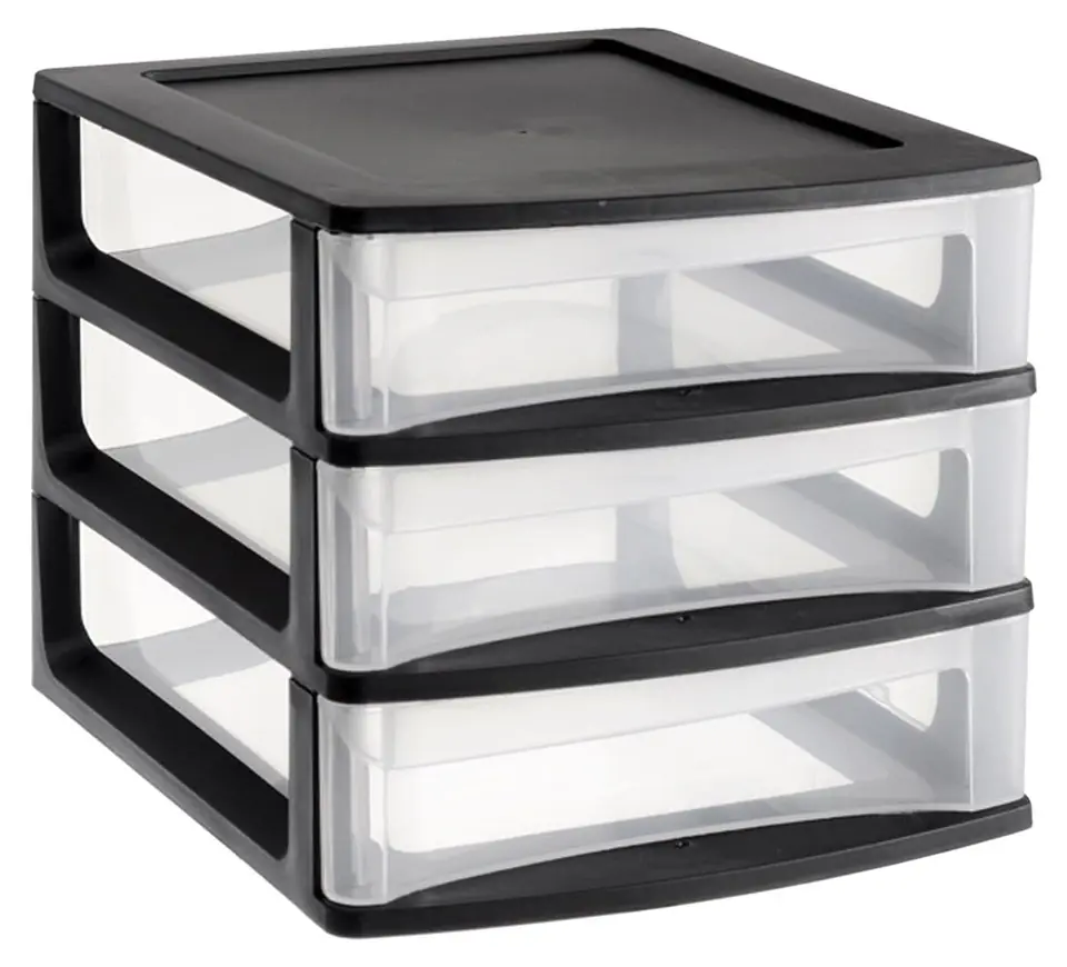Do efektywnego zorganizowania przestrzeni na biurku wystarczy ten mały, trzy-szufladowy moduł, w którym możemy przechowywać notatki, długopisy, nożyczki czy spinacze.