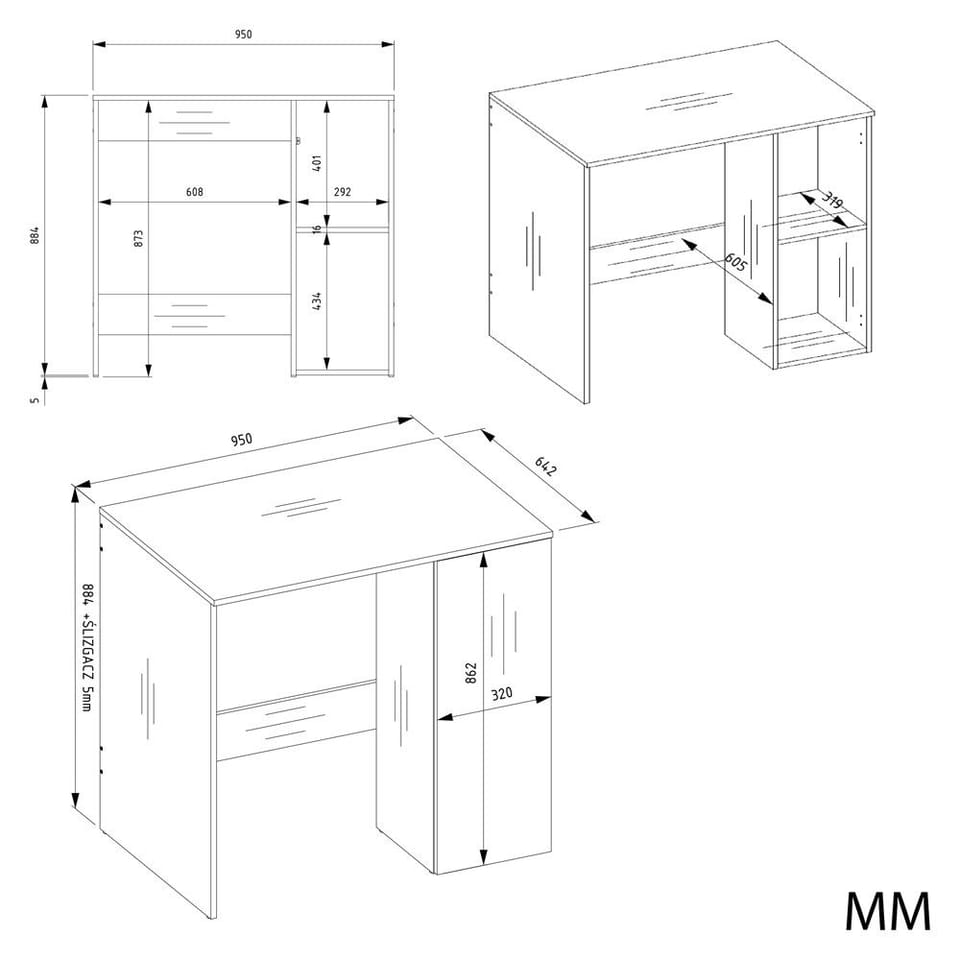 - Praktyczny moduł z drzwiami – 2 pojemne półki po prawej stronie