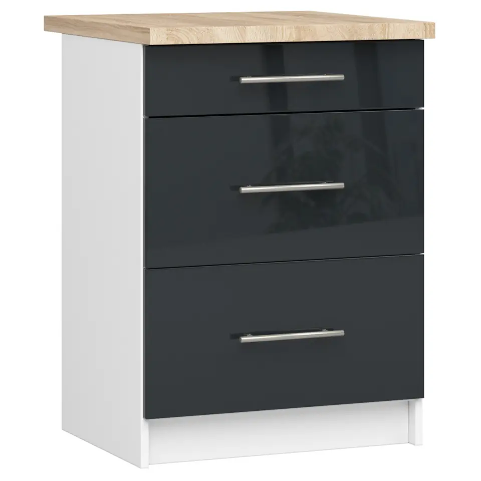 Szafka OLIWIA S60 3SZ + BLAT BIAŁA / GRAFIT POŁYSK