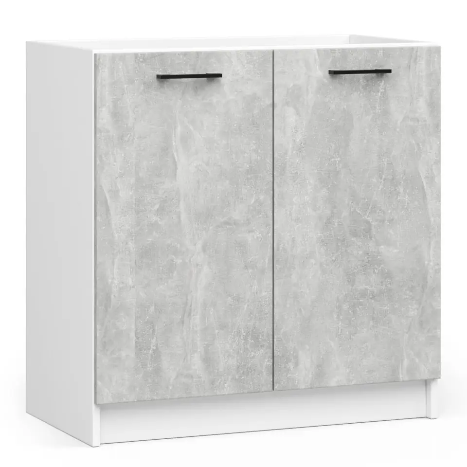 Szafka kuchenna pod zlewozmywak Oliwia S 80 cm w kolorze białym z frontami betonowymi to produkt o ponadczasowym charakterze. Charakteryzuje go uniwersalny design oraz wysoka jakość. Pochodząca z zestawu propozycja doskonale łączy się z wszystkimi pozostałymi elementami, z których można stworzyć kompozycję idealnie dopasowaną do konkretnych potrzeb. Dzięki temu uda się Państwu zaaranżować nawet niewielką przestrzeń z wyjątkowo funkcjonalny sposób. Szafka pod zlew nakładany na mebel została zaprojektowana pod zlewozmywak o wymiarach 80 cm x 60 cm. Wewnątrz prezentowanej propozycji jest wolna przestrzeń do dowolnego zagospodarowania.