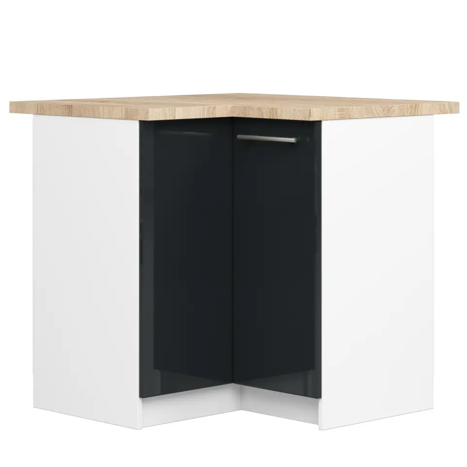 Kuchnia to pomieszczenie będące sercem każdego domu. To właśnie tutaj domownicy codziennie przygotowują liczne posiłki, oddając się rozmowom oraz spędzając razem czas. Nic więc dziwnego, że każdy chce swoją kuchnię urządzić w sposób zarówno funkcjonalny, jak i przyjemny dla oka. Meble pochodzące z kolekcji Oliwia z pewnością w tym pomogą. Prezentujemy jeden z elementów pochodzących właśnie z tego zestawu modułowego - szafkę narożną S90/90N zaprojektowaną w modnym kolorze białym z frontami grafit połysk, z którym doskonale kontrastują czarne, matowe uchwyty, tworząc niepowtarzalną całość. Elegancki mebel umożliwia otworzenie drzwiczek na prawą oraz lewą stronę, dzięki czemu możliwe jest uzyskanie swobodnego dostępu do dużej przestrzeni, w której można umieścić wiele artykułów niezbędnych w każdej kuchni, środków czystości czy produktów spożywczych.