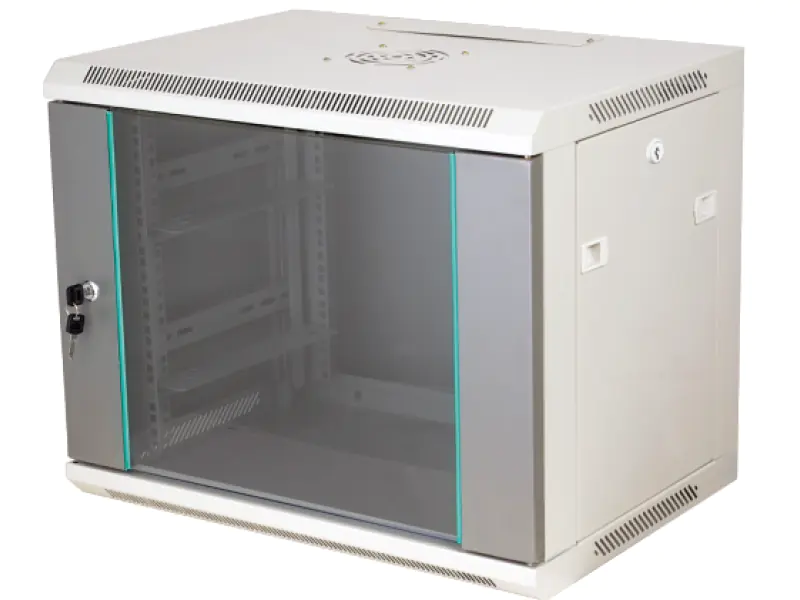 Szafy RACK wiszące 19" przeznaczone do zastosowań wewnątrz pomieszczeń, dostępne w 6 wysokościach użytkowych (4, 6, 9, 12, 15 i 18U) z drzwiami szklanymi do montażu okablowania i sprzętu aktywnego. Mogą być również z powodzeniem stosowane w systemach CCTV czy security. Do ściany montuje się ją przy pomocy czterech specjalnych kotew znajdujących się w zestawie. Szafa posiada dwa wyłamywane przepusty kablowe - po jednym w górnej i dolnej pokrywie. Szafy zapakowane są w karton z kablami uziemiającymi oraz osprzętem montażowym.