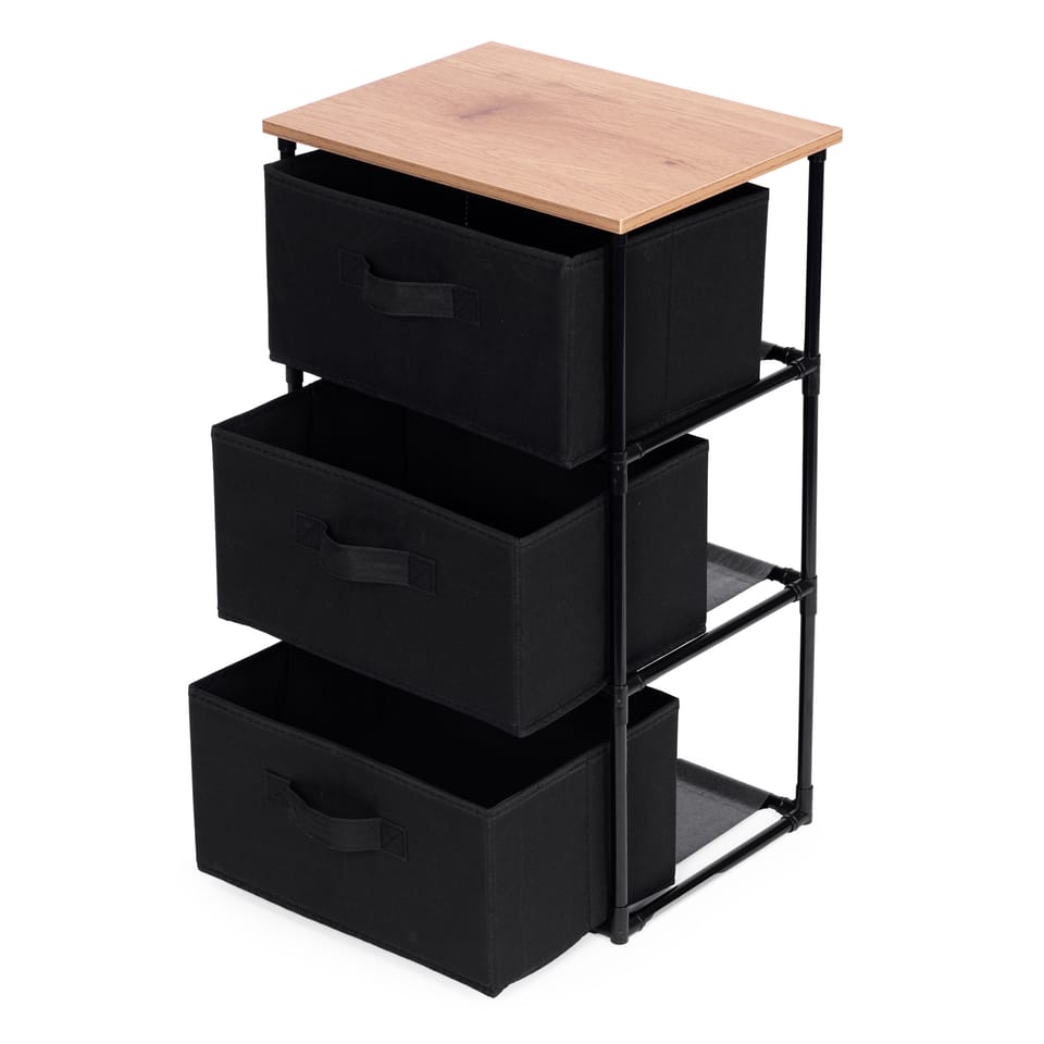Szafka posiada 3 wyjmowane kosze, które wykonano z trwałego materiału odpornego na uszkodzenia, dzięki czemu można w nich przechowywać różnorodne rzeczy, od ubrań i akcesoriów po książki czy też zabawki. Wygodne uchwyty ułatwią wysuwanie koszy, co zwiększy komfort użytkowania.