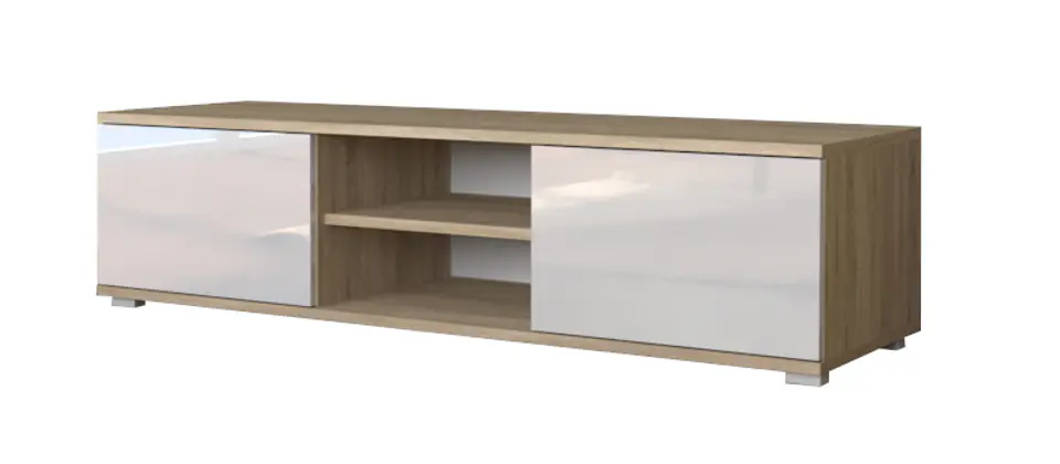 Szafka RTV 120 CM - DĄB SONOMA z białymi frontami w połysku