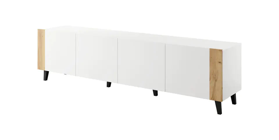 Szafka RTV FARO 200x42x52 biały mat + dąb craft
