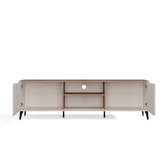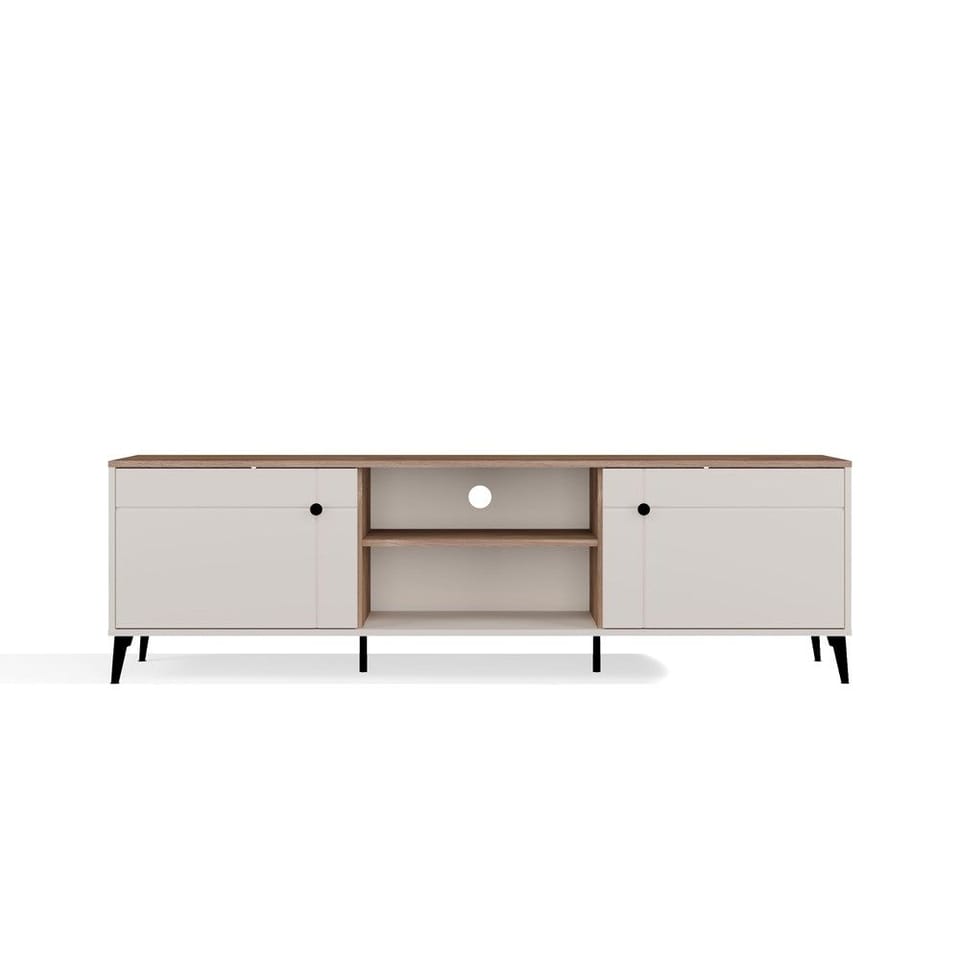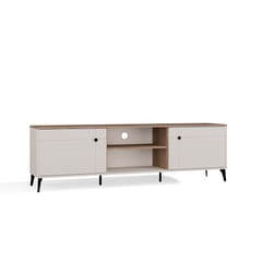 Szafka RTV POINT 2D to nowoczesna propozycja z wyjątkowej kolekcji Point- łącząca elegancję beżowego koloru Kaszmir z ciepłem naturalnego blatu w dekorze Dąb Castello. Minimalistyczna forma i wyraziste detale czynią ten mebel nie tylko funkcjonalnym, ale również estetycznym elementem każdego salonu.