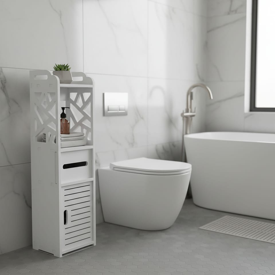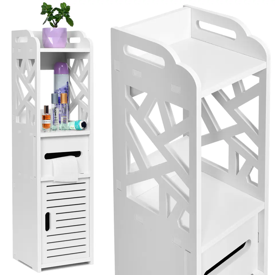 Szafka stojąca do łazienki MALTA białaPrzeznaczenie: łazienka, toaleta, na kosmetyki | Kolor: biały Biała, ażurowa szafka łazienkowa MALTA to idealne rozwiązanie dla małych łazienek. Jest funkcjonalna i stylowa, a jej lekka konstrukcja sprawia, że łatwo ją można przenieść w wybrane miejsce.Szafka posiada schowek z drzwiami i półkami wyciętymi w odpowiednim rozmiarze, dzięki czemu można w niej przechowywać dodatkowy papier toaletowy i ręczniki. Dwupoziomowa konstrukcja z półkami zapewnia dodatkową przestrzeń do przechowywania,a dzięki temu, że mebel jest wykonany z mieszanki drewna i tworzywa sztucznego, jest wodoodporny, bezpieczny i ekologiczny.MALTA to mebel o nowoczesnym designie, który idealnie wpasuje się w każdą łazienkę. Jest praktyczna i estetyczna, co sprawia, że z pewnością będzie idealnym wyborem dla osób ceniących sobie funkcjonalność i prostotę. ZaletyIdealna do małych pomieszczeńFunkcjonalna i stylowaŁatwa do przenoszeniaPosiada schowki z drzwiami i półkami, wycięte w odpowiednim rozmiarzeMożliwość przechowywania dodatkowego papieru toaletowego i ręcznikówDwupoziomowa konstrukcja z półkamiWykonana z mieszanki drewna i tworzywaWodoodporna, bezpieczna i ekologicznaNowoczesny designPraktyczna i estetyczna Specyfikacja:Materiał: WPC (wood plastic composite)Kolor: BiałyWymiary szafki: 80 x 21 x 20 cm (wysokość x szerokość x głębokość)Waga: około 3,8 kgLiczba drzwi: 1Liczba półek: 4 (2 otwarte, 2 zamknięte)Miejsce na papier toaletowy: TakBoczne ażurowe zdobienia: TakMontaż: Samodzielny, bez użycia narzędziMontaż drzwi: lewostronny lub prawostronnyOdporność na wilgoć: TakInne cechy: łatwe w utrzymaniu czystości Informacje dodatkowePrzedstawione kolory należy traktować poglądowo - mogą odbiegać od rzeczywistych ze względu na różne ustawienia monitorów oraz proces obróbki zdjęć. Rzeczywiste wymiary mogą się różnić od podanych wyżej. Tolerancja błędów może wynosić +/- 5%. Marka:GockowiakKod produktu:328873MGMateriał:WPC [mieszanka drewna i tworzywa]Wysokość: 80 cmSzerokość:21 cmGłębokość:20 cmLiczba półek:2Do samodzielnego montażu:tak