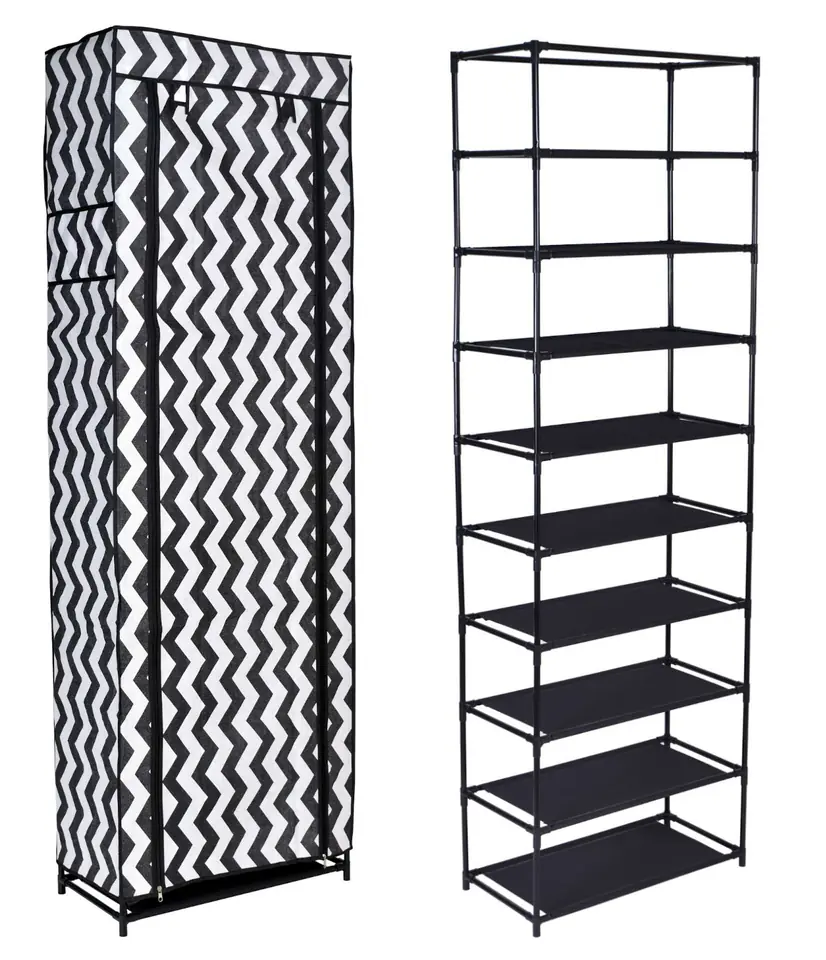 Półka, regał na buty wykonany ze stalowych ramek tworzących jej szkielet.Na stelaż nałożony jest oddychający dobrej jakości materiał.Jest łatwa do utrzymania czystości i praktyczna, półka idealnie nadaje się do przetrzymywania czapek, szalików, rękawiczek, butów lub innych drobnych rzeczy.Lekka i solidna konstrukcja w dowolnej chwili możesz ją złożyć, przewieść, przestawić.Wiele zastosowań!Idealny do Firmy, Biura, Domu, na Kemping !łatwy w montażulekka i stabilna konstrukcjametalowy stelażestetyczne wykonanienowoczesność9 PółekDwie kieszenie (po 1 na każdym boku)Półki wykonano z wodoodpornej włókniny. Specjalna powłoka zapobiega ich zabrudzeniu.Wymiary:Wysokość 172 cmGłębokość 29 cmSzerokość 57 cm INSTRUKCJA | Przed przystąpieniem do montażu zapoznaj się z instrukcją montażu. UWAGA◙ Rzeczywiste wymiary mogą się różnić od podanych wyżej. Tolerancja błędów może wynosić +/- 3 cm.◙ Pokrowiec garderoby nie zakrywa całości stelaża, kończy się nad dolnymi półkami.◙ Przedstawione kolory należy traktować poglądowo - mogą odbiegać od rzeczywistych ze względu na różne ustawienia monitorów oraz proces obróbki zdjęć.