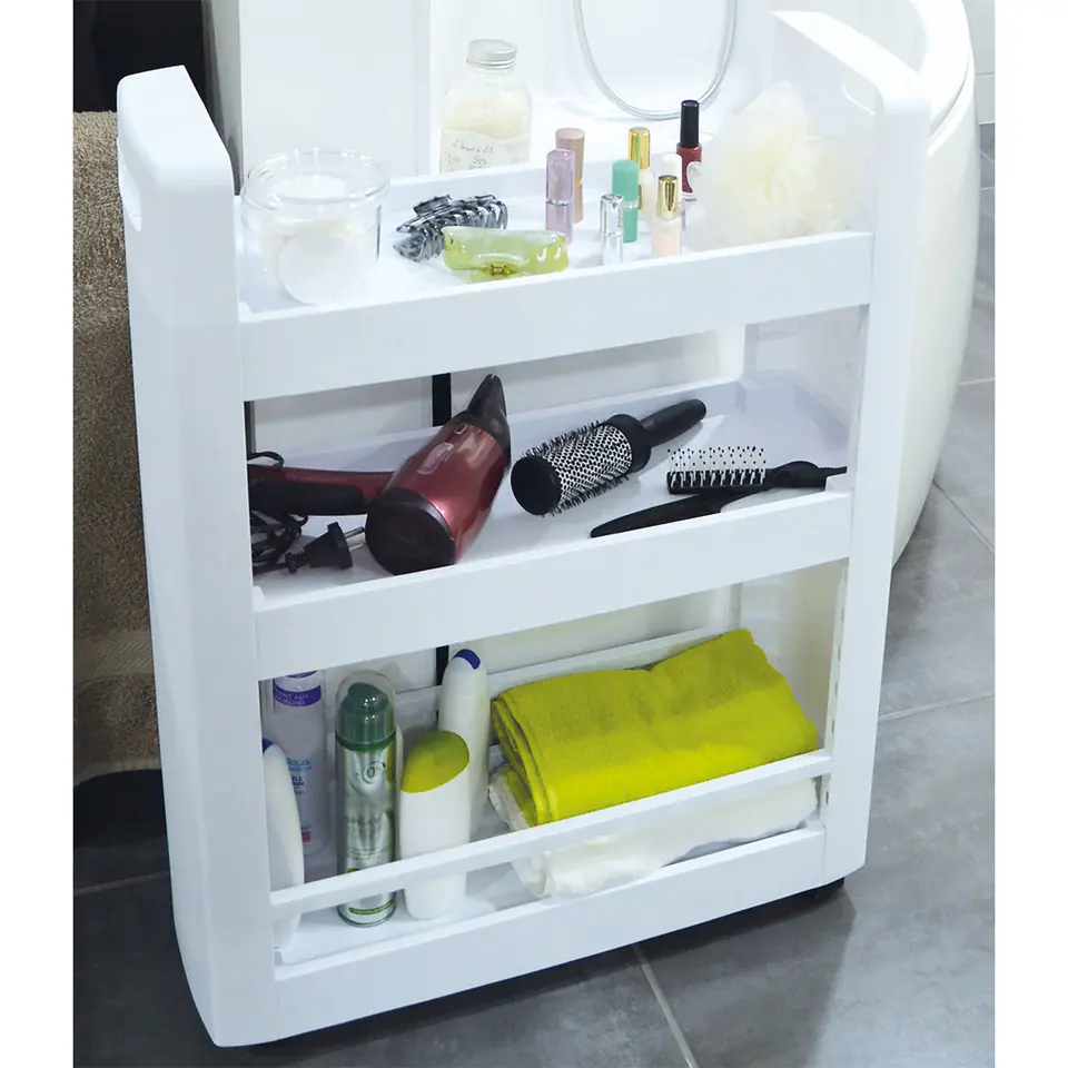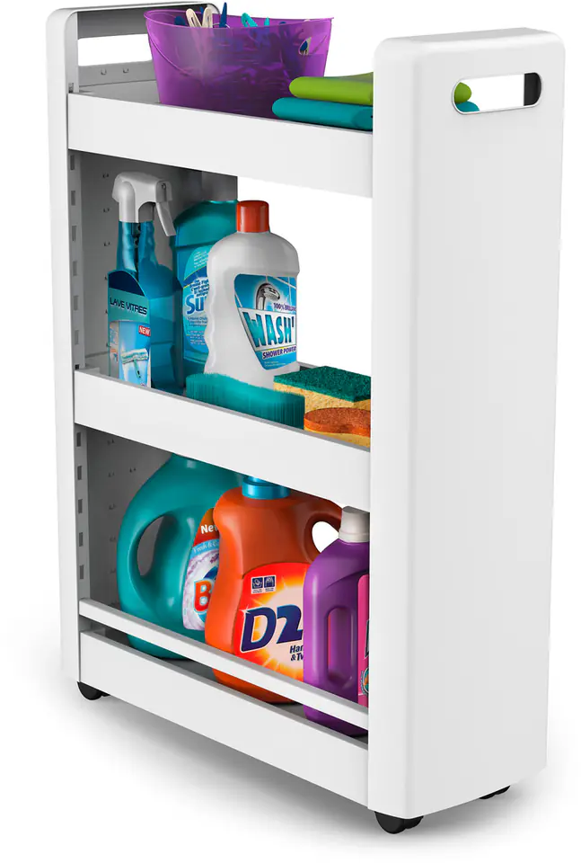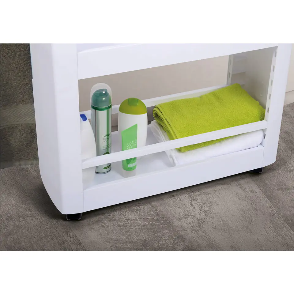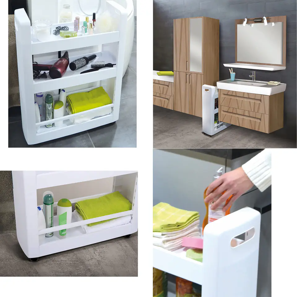 Uniwersalna i wielofunkcyjna szafka na kółkach, zmieści się nawet na bardzo małej przestrzeni, zapewniając dodatkowe miejsce do przechowywania.