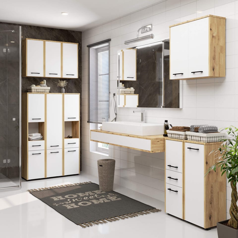 Szukasz do swojej łazienki praktycznej i uniwersalnej szafki, która pomieści najpotrzebniejsze drobiazgi, chemię gospodarczą lub kosmetyki? Nasza szafka łazienkowa wisząca z pewnością sprosta tym zadaniom. Wykonana z płyty laminowanej o szerokości 16 mm doskonale prezentuje się na tle ściany, a przy tym wykazuje odporność na ścieranie. Szybko i bezproblemowo można z niej usunąć drobne zabrudzenia, a klasyczny uchwyt zamocowany w jej dolnej części doskonale komponuje się z bielą łazienkowego mebla. Uniwersalna biel pozwala na dopasowanie szafki do zamontowanych już wcześniej elementów wystroju łazienki lub urządzenia pomieszczenia w minimalistycznym klimacie. Produkt można dowolnie łączyć z innymi meblami, utrzymanymi w tej samej stylistyce lub wręcz odwrotnie. To właśnie jedna z podstawowych zalet, jaką niesie ze sobą wybór uniwersalnych barw. Montaż szafki jest bardzo prosty, a po nim pozostaje tylko wypełnienie miejsca zgromadzonymi kosmetykami, apteczką pierwszej pomocy lub dowolnymi przedmiotami.