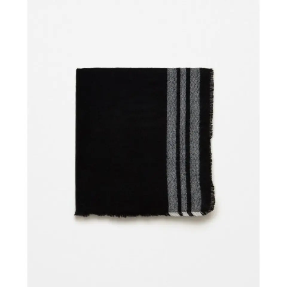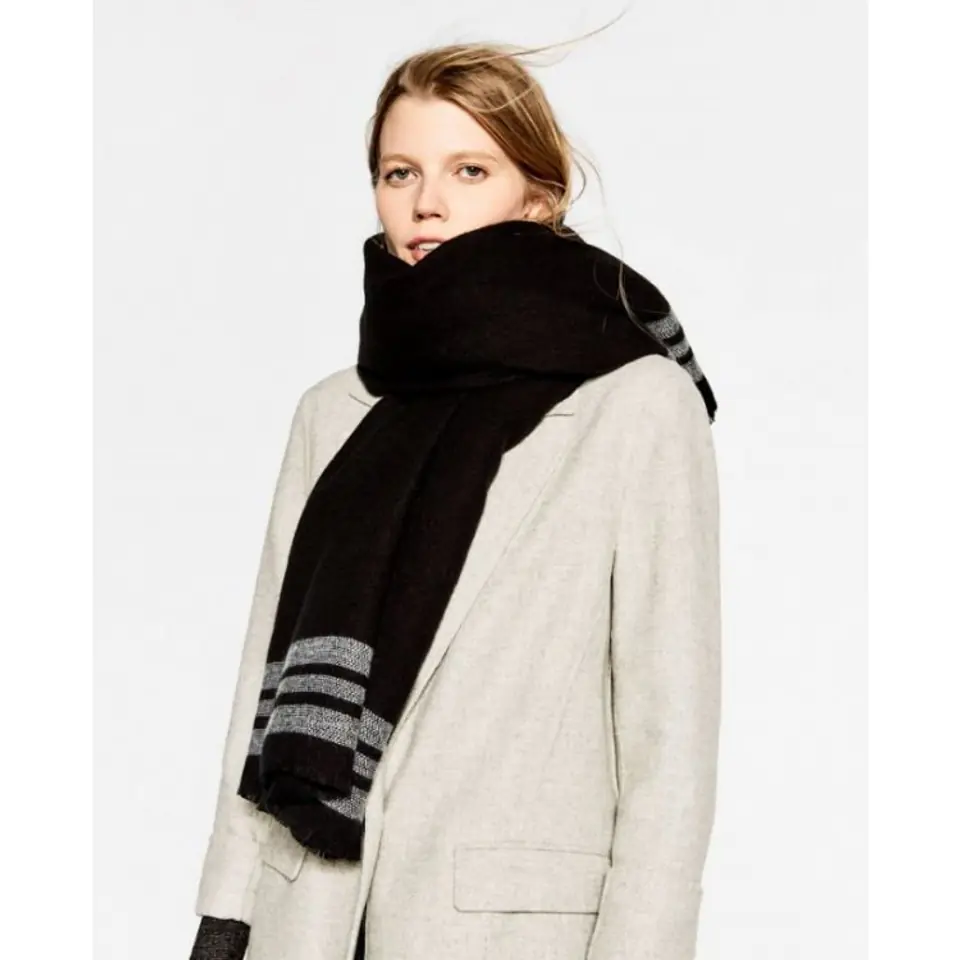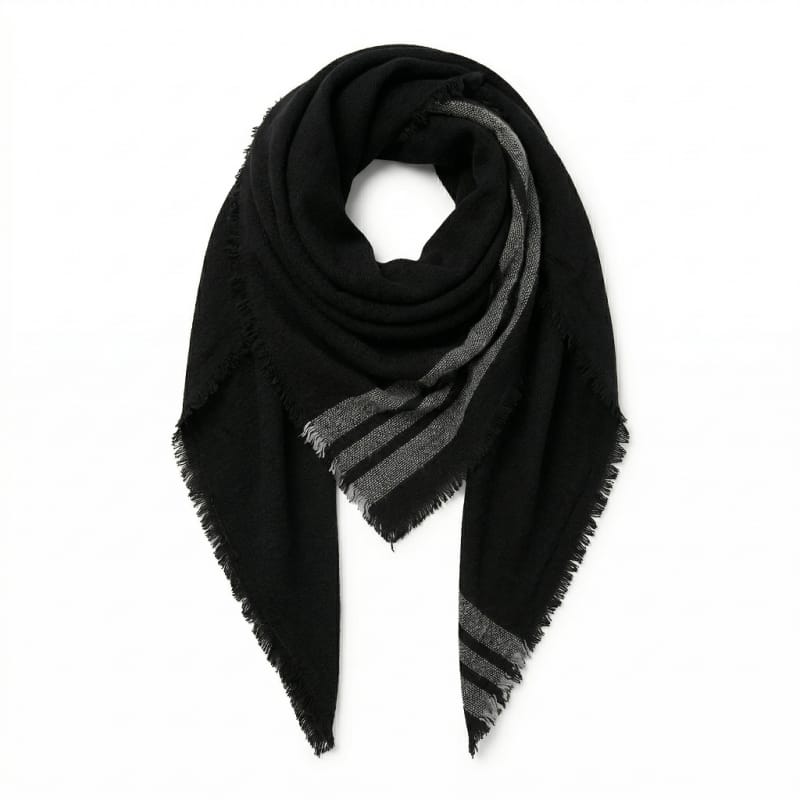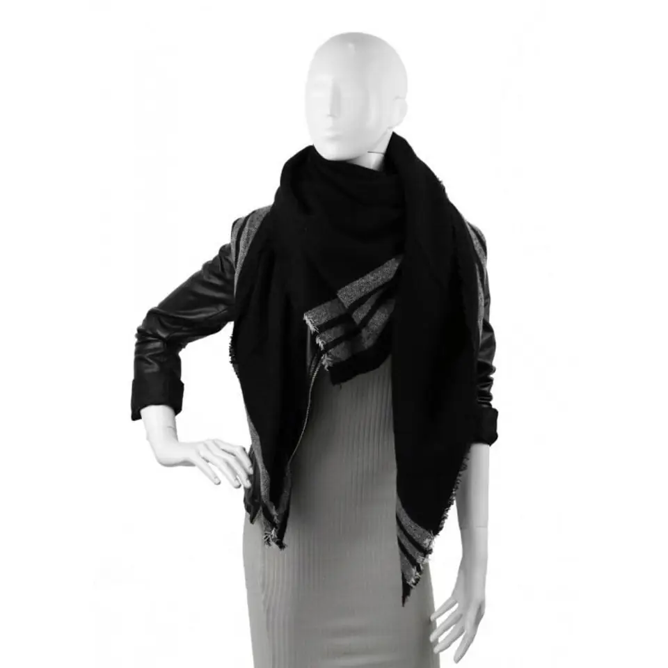 Szal chusta damska czarna z szarymi paskami SZALS19