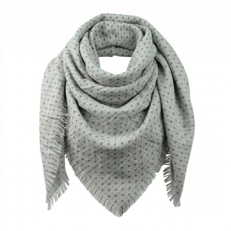 Elegancki szal / chusta Kolory: szary140 cm x 140 cmMateriał:80 % wiskoza20 % bawełna Idealny do jesiennych kurtek oraz zimowych płaszczy.