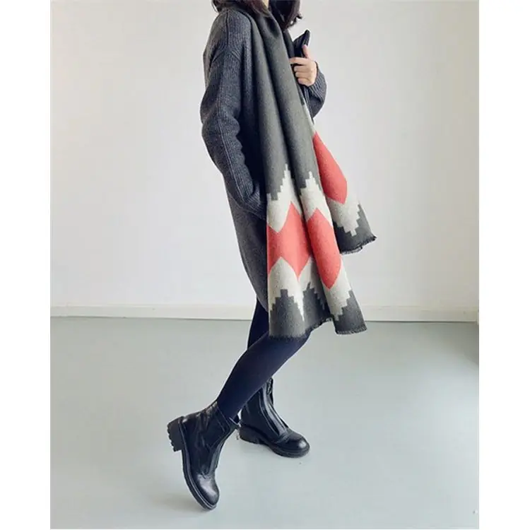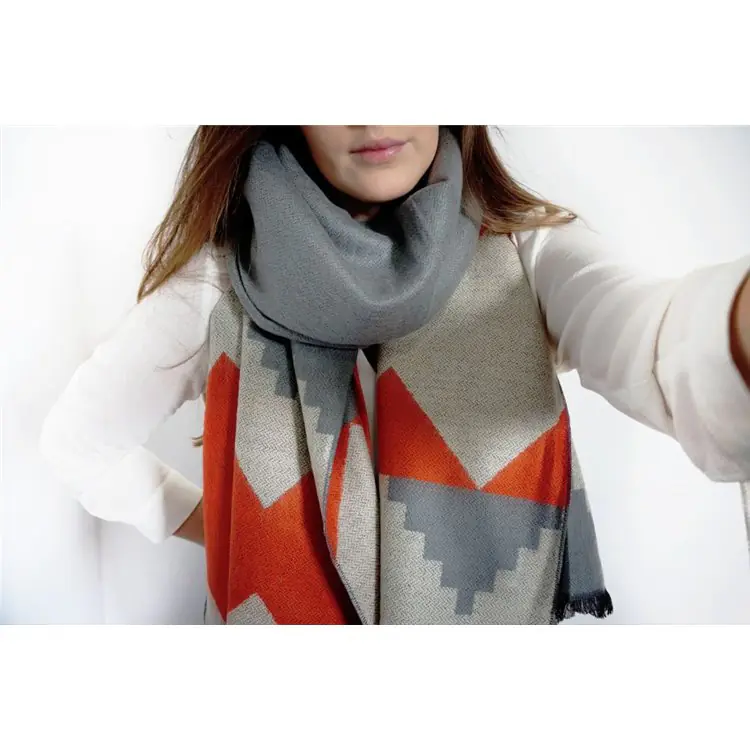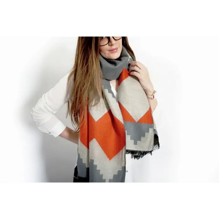 Elegancki szal / chusta w kolorach moreli i szarościWymiary :190 cm x 70 cmMateriał :80 % wiskoza20 % bawełna Idealny do jesiennych kurtek oraz zimowych płaszczy.