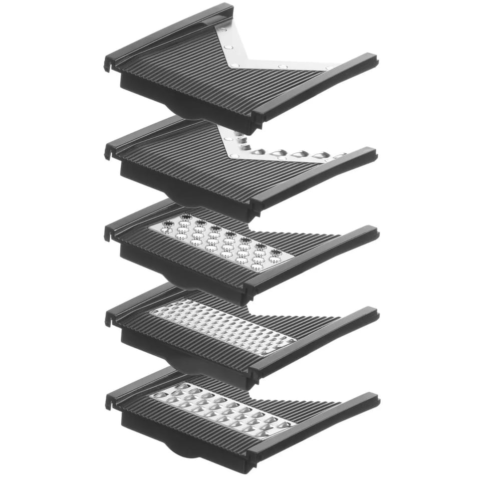 Kod producenta: 222614Szatkownica do warzyw marki HENDI z 5 przystawkami to funkcjonalne i wszechstronne narzędzie, które sprawdzi się w każdej kuchni. Wykonana została z twardego tworzywa w kolorze czarnym, noże ze stali nierdzewnej najwyższej jakości. Cechy produktu: