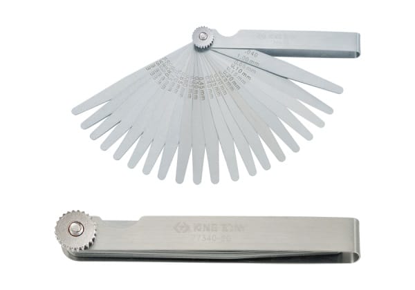 Szczelinomierze King Tony 20 sztuk. Rozmiar blaszki 10x100 mm, rozmiary 0.05, 0.1, 0.15, 0.2, 0.25, 0.3, 0.35, 0.4, 0.45, 0.5, 0.55, 0.6, 0.65, 0.7, 0.75, 0.8, 0.85, 0.9, 0.95, 1 mm Karta produktu - 77340-20