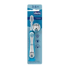 Nowa szczoteczka do zębów Chicco, stworzona specjalnie dla dzieci w wieku od 3 do 6 lat, to gwarancja kompleksowej opieki nad delikatnymi zębami i dziąsłami Twojego malucha. Nasza szczoteczka to produkt, który towarzyszy w codziennej higienie jamy ustnej, zapewniając nie tylko czyste zęby, ale także ochronę delikatnej tkanki dziąseł i szkliwa. Zaawansowana technologia i najwyższa jakość materiałów gwarantują kompleksową pielęgnację już od pierwszych lat życia. Bardzo miękkie włosie o stożkowatym kształcie, z bardzo cienkimi końcami - do delikatnego czyszczenia szkliwa, wrażliwych dziąseł oraz trudno dostępnych przestrzeni międzyzębowych. Główka szczoteczki posiada włosie oznaczone innym kolorem, co ułatwia kontrolę ilości pasty do zębów potrzebnej do skutecznej higieny jamy ustnej. Główka szczoteczki została specjalnie zaprojektowana z myślą o najmłodszych - wyposażona w czyścik do języka, zapewniającą kompleksową higienę jamy ustnej Twojego dziecka. Dodatkowo, ergonomiczny i antypoślizgowy uchwyt sprawia, że korzystanie z naszej szczoteczki jest łatwe i bezpieczne, nawet dla małych rączek. Codzienna higiena jamy ustnej to kluczowy nawyk, który warto wprowadzić już od najwcześniejszych lat. Daj swojemu dziecku najlepszy start w dbaniu o zdrowie jamy ustnej dzięki szczoteczce do zębów Chicco. Odkryj nowe standardy pielęgnacji zębów już dziś! CECHY: Miękki, stożkowy kształt włosia z bardzo cienkimi końcówkami zapewnia delikatne działanie na szkliwo i wrażliwe dziąsła* Główka szczoteczki z czyścikiem do języka Główka szczoteczki z zaznaczonym innym kolorem włosiem, który wskazuje na odpowiednią ilość pasty do zębów do nałożenia Ergonomiczny, antypoślizgowy uchwyt Zabawne wzory zwierząt na rączce szczoteczki Dopasowana, wygodna osłonka na główkę szczoteczki * Badania przeprowadzone w celu oceny skuteczności usuwania płytki nazębnej z przestrzeni najmniej dostępnych dla szczoteczek potwierdzają, że włosie z technologią stożkową jest bardziej skuteczne w usuwaniu kamienia nazębnego, dzięki ułatwionemu dostępowi do przestrzeni dziąsłowych w porównaniu do tradycyjnych włosi, zapewniając jednocześnie większą przyjemność użytkowania.