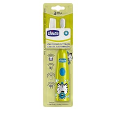 Elektryczna szczoteczka do zębów 3+ Nasza zasilana bateryjnie elektryczna szczoteczka to połączenie innowacyjnej technologii i przyjaznego dla dzieci designu. Wyposażona w wibrującą główkę oraz bardzo miękkie stożkowe włosie o cienkich końcówkach, dba o czystość i zdrowie zębów oraz dziąseł, zapewniając delikatne, ale skuteczne czyszczenie. Dla dodatkowej radości podczas codziennej rutyny higienicznej, nasza szczoteczka ozdobiona jest wesołymi motywami tygrysa i pandy, które przyciągają uwagę i sprawiają, że mycie zębów staje się przyjemną przygodą dla każdego dziecka. Zapewnij swoim maluchom doskonałą pielęgnację jamy ustnej dzięki elektrycznej szczoteczce do zębów Chicco - wybierz jakość, wybierz komfort, wybierz radość! CECHY: Bardzo miękkie włosie na główce szczoteczki ma delikatne działanie na szkliwo i wrażliwe dziąsła* Wibrująca główka szczoteczki Zasilana bateriami (możliwa wymiana) Zabawne zwierzątka na rączce szczoteczki do zębów Wysoka precyzja mycia zębów W zestawie dodatkowa wymienna szczoteczka * Badania przeprowadzone w celu oceny skuteczności usuwania płytki nazębnej z przestrzeni najmniej dostępnych dla szczoteczek potwierdzają, że włosie z technologią stożkową jest bardziej skuteczne w usuwaniu kamienia nazębnego, dzięki ułatwionemu dostępowi do przestrzeni dziąsłowych w porównaniu do tradycyjnych włosi, zapewniając jednocześnie większą przyjemność użytkowania.