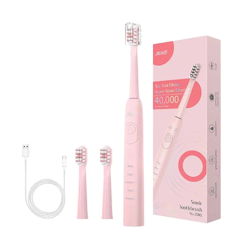 Co sprawia, że szczoteczka soniczna SG-2303 może wyczyścić zęby o wiele efektywniej niż zwykła szczoteczka? Urządzenie zostało wyposażone w wydajny silnik, dzięki któremu generuje wibracje z częstotliwością do 40 000 uderzeń na minutę. Dzięki temu umożliwia dokładne mycie nawet trudno dostępnych obszarów. Skutecznie eliminuje zanieczyszczenia i resztki jedzenia. W efekcie możesz cieszyć się czystymi, zdrowymi, śnieżnobiałymi zębami.