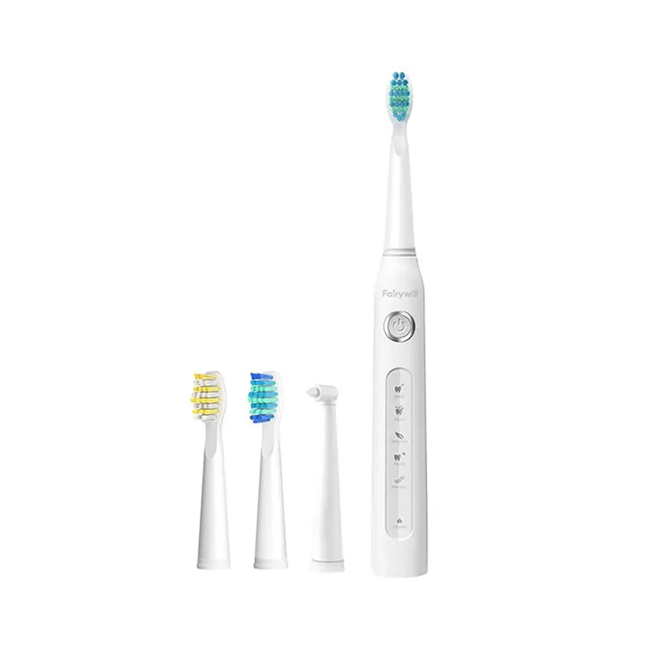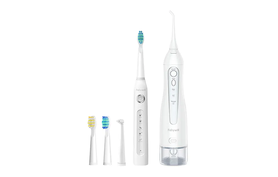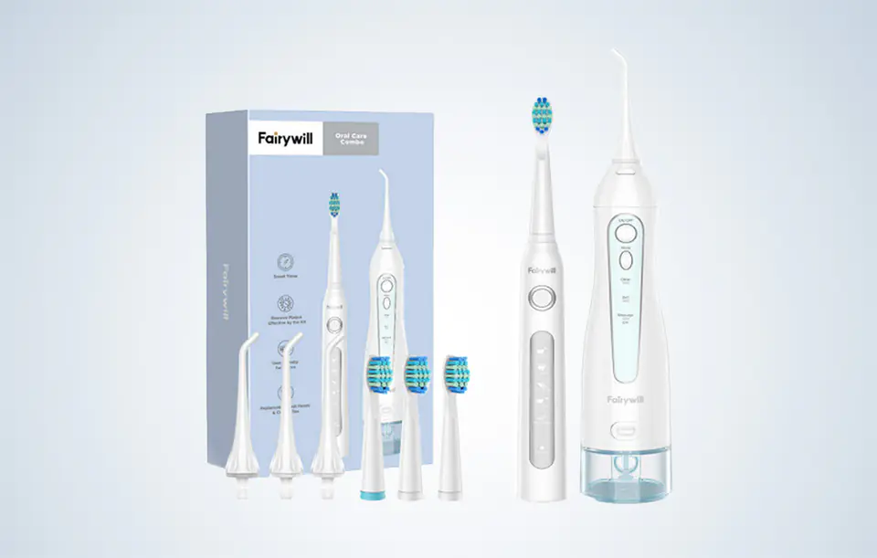 Zachwyć wszystkich olśniewającym uśmiechem. Zaakceptowana przez ADA szczoteczka soniczna FairyWill FW507 generuje wibracje z częstotliwością nawet 40 000 na minutę i oferuje 5 trybów pracy do wyboru. Została też wyposażona w inteligentny, 2-minutowy timer. Jej wytrzymały akumulator zapewnia czas pracy do 30 dni na jednym ładowaniu. Ponadto w opakowaniu znajdziesz też irygator FairyWill 5020E, który posiada 3 tryby pracy do wyboru i umożliwia dokładne mycie zębów. Został wyposażony w zbiornik na wodę o pojemności 300 ml, którego uzupełnianie nie sprawi Ci żadnego problemu.