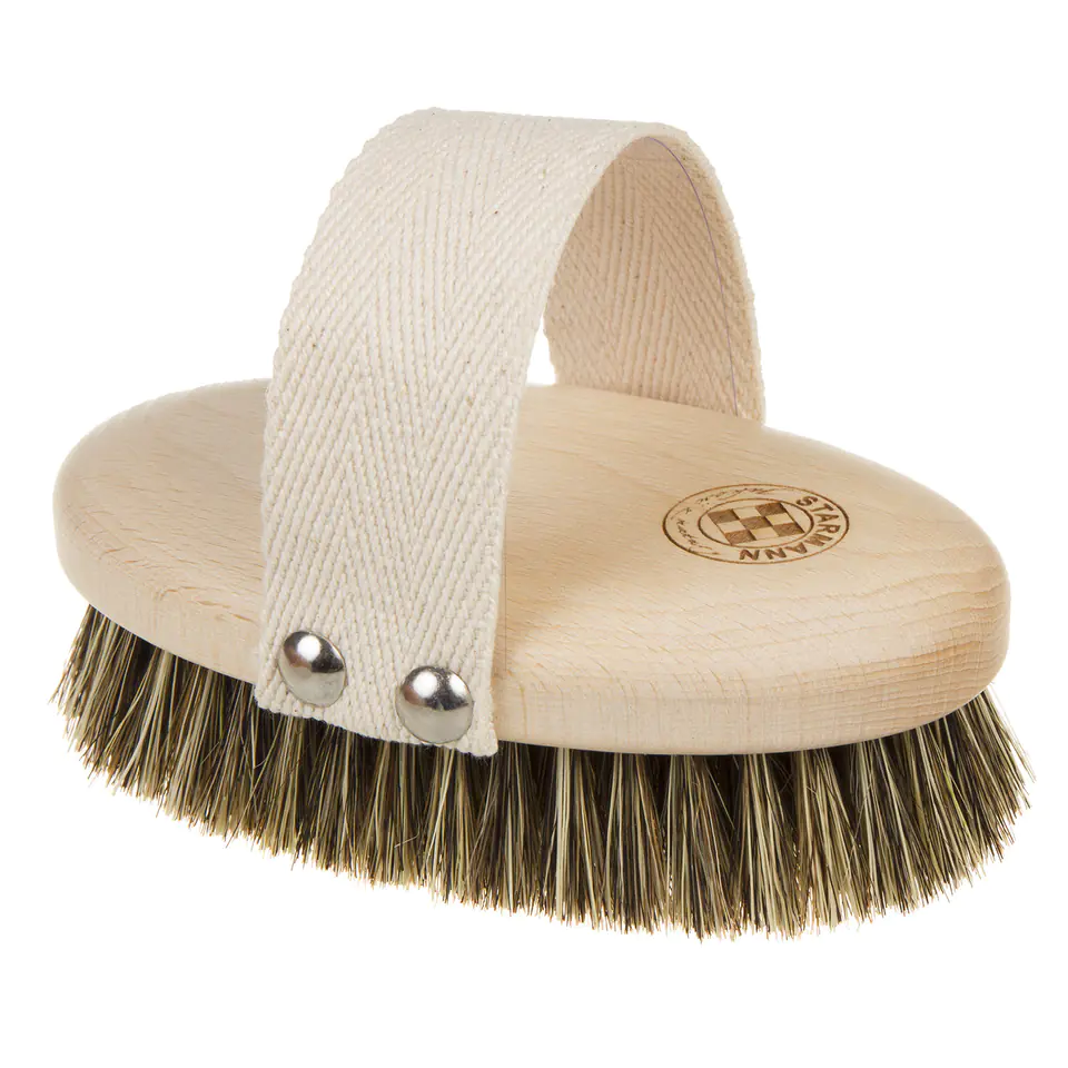 W 100% naturalna szczotka do do mycia twarzy.Szczotka wykonana jest bardzo precyzyjnie i solidnie, każdy detal jest dopieszczony (jakości drewna bukowego oraz, specjalnie dobrane włókno końskie i tampico).Należy pamiętać, iż używając drewnianej szczotki na mokro, mogą się zdarzyć pęknięcia drewna.Polecamy szczotkowanie na sucho przed prysznicem, wówczas skutek złuszczania naskórka jest lepszy, nie dociskamy szczotki tylko delikatnie jej ciężarem masujemy ciało.