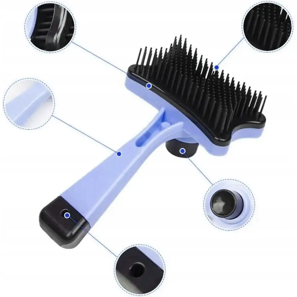 Specjalny przycisk pozwoli jednym ruchem pozbyć się zalegającej na szczotce sierści, a plastikowe włoski szczotki nie tylko wyczeszą sierść, ale też wymasuję Twojego pupila.