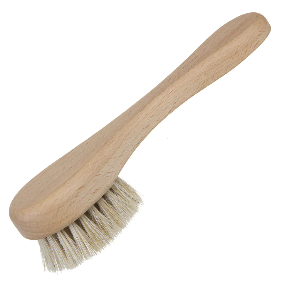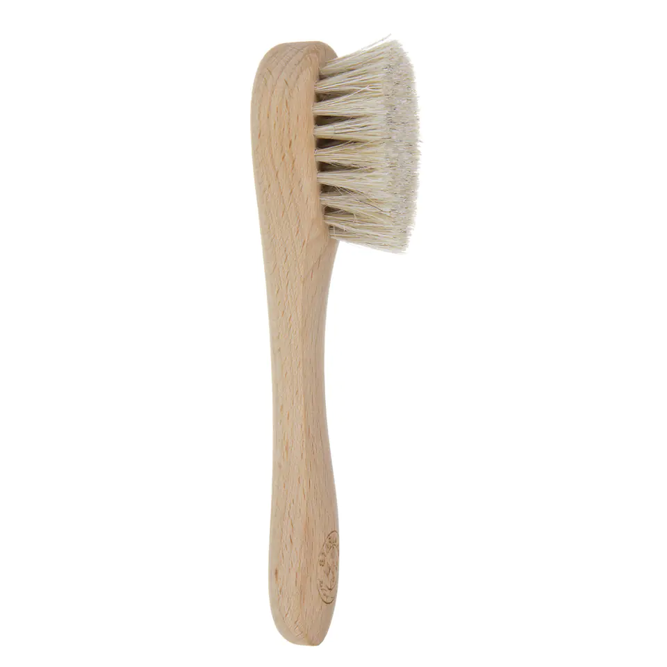 W 100% naturalna szczotka do do mycia twarzy.Szczotka wykonana jest bardzo precyzyjnie i solidnie, każdy detal jest dopieszczony (jakości drewna bukowego oraz, specjalnie dobrane włókno końskie).Należy pamiętać, iż używając drewnianej szczotki na mokro, mogą się zdarzyć pęknięcia drewna.Polecamy szczotkowanie na sucho przed prysznicem, wówczas skutek złuszczania naskórka jest lepszy, nie dociskamy szczotki tylko delikatnie jej ciężarem masujemy ciało.