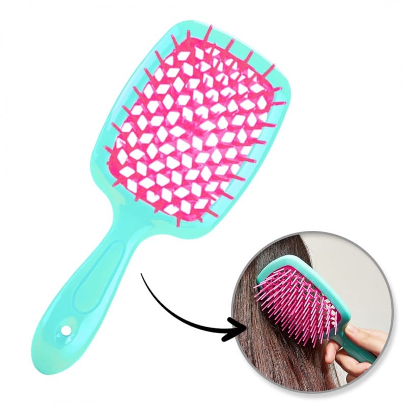 Praktyczna szczotka do włosów Cechy produktu: - Szczotka jest idealna do rozczesywania włosów zarówno suchych, jak i mokrych.- Posiada nylonowe igły oraz mieszane włosie.- Wygodny, ergonomiczny uchwyt.- Matowy, antypoślizgowy uchwyt wykonany z tworzywa sztucznego-Wysoka trwałość. Wymiary: Długość: 20,2cmŚrednica: 8,4cm Wymiary opakowania:21cm x 8,5cm x 3,6cm Waga:44g netto / 72g brutto
