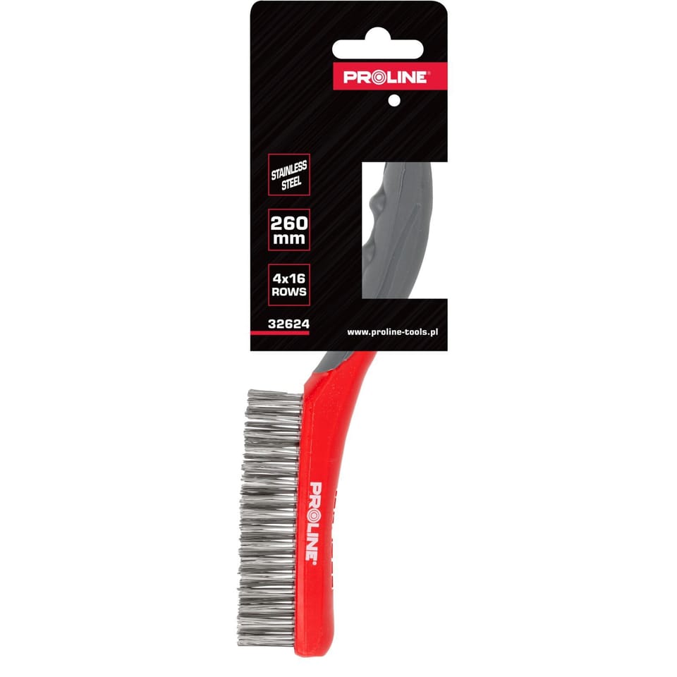 Szczotka druciana - stal nierdz, 4x16 rzędów, 260mm, proline