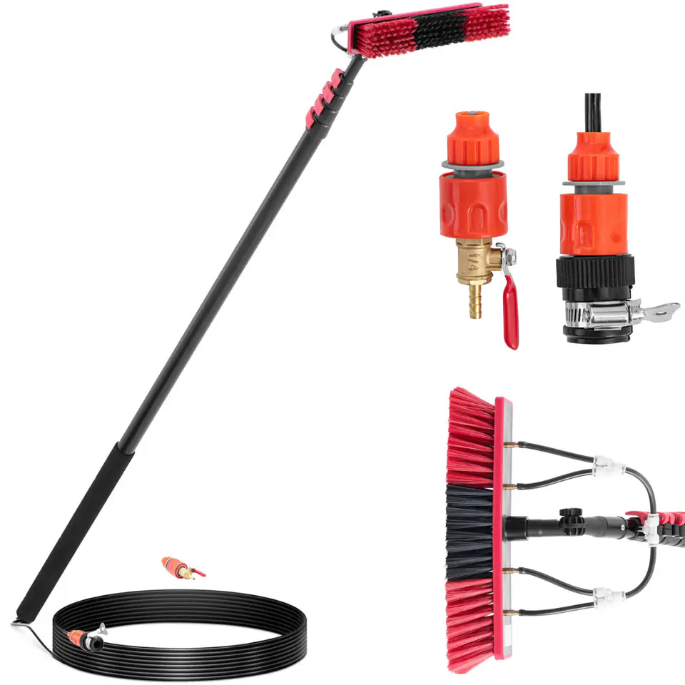 Kod producenta: 10050453Szczotka teleskopowa do mycia ulsonix pomoże wyczyścić z łatwością panele fotowoltaiczne, okna i inne szklane powierzchnie. Za sprawą wysuwanej rączki dotrze również do trudno dostępnych miejsc. Szczotka do mycia okien nadaje się więc idealnie do profesjonalnego sprzątania budynków. Szczotka ma przyłącze wody i 5 sekcji opryskowych. Główkę szczoteczki przechyla się za pomocą adaptera kątowego. Szczotkę do mycia z teleskopową rączką można wydłużyć do 7200 mm. Po złożeniu urządzenie ma wymiary 1750 mm. Dzięki dużej długości myjka jest uniwersalna. Można z łatwością dotrzeć do wysoko położonych miejsc bez użycia drabiny. Szczotkę teleskopową można podłączyć do myjki wysokociśnieniowej za pomocą węża. Dzięki temu szybko i łatwo usuwa się nawet uporczywy brud bez konieczności silnego szorowania. Myjka teleskopowa delikatnie wyczyści moduły fotowoltaiczne – zarówno poli-, jak i monokrystaliczne. Regularna konserwacja pomaga utrzymać wydajność paneli słonecznych. Teleskopowy uchwyt szczotki do mycia wykonany jest z wytrzymałego aluminium.. Mocne blokowanie zapobiega obracaniu się główki szczoteczki wokół własnej osi podczas pracy. Zamiast tego głowica znajduje się na swoim miejscu, dzięki czemu można myć bez przeszkód. Szczotka do okien ma ergonomiczny kształt, który zapewnia dobry chwyt. Zastosowane materiały są lekkie i łatwe do przenoszenia, nawet podczas długiego sprzątania.Cechy produktu: