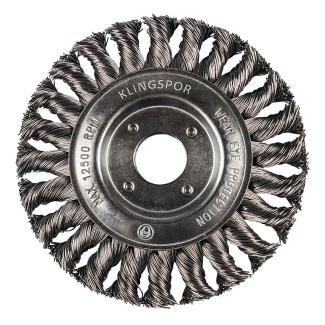 SZCZOTKA TARCZOWA drut splatany, stal falista 125x14x22,23mm 1/1) KLINGSPO