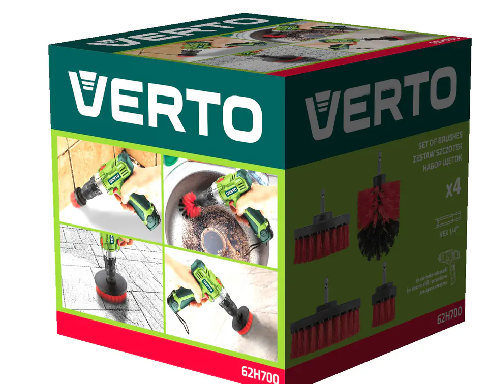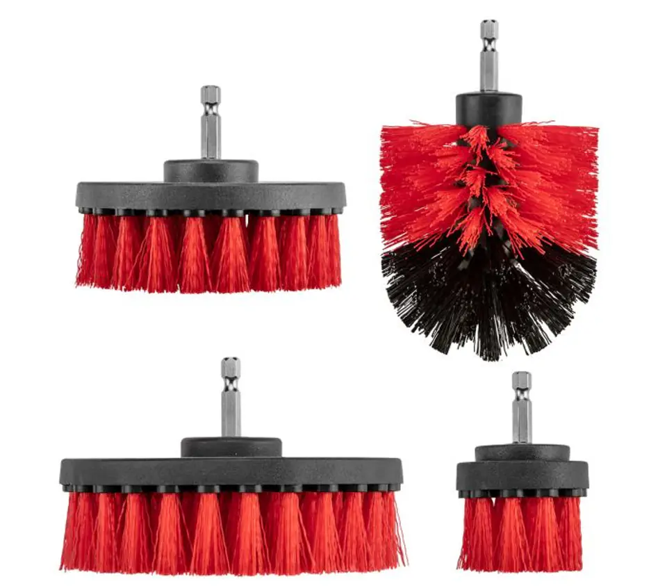 Szczotki czyszczące na wiertarkę lub wkrętarkę, średnice 50, 90, 100, 130 mm, uchwyt sześciokątny, średniej twardości włosie, obudowa z tworzywa sztucznego, zestaw 4 szt.