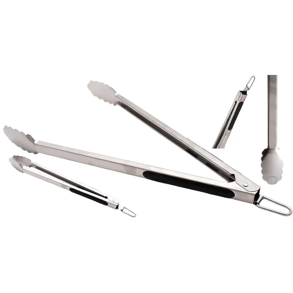 - wkonane ze stali nierdzewnejułatwiają przekładania i układanie pożywienia na ruszcierękojeść pokryta antypoślizgowym materiałemspecjalny uchwyt pozwoli zawiesić szczypce na dowolnum hakułatwe w utrzymaniu czystościlekkie i poręczne