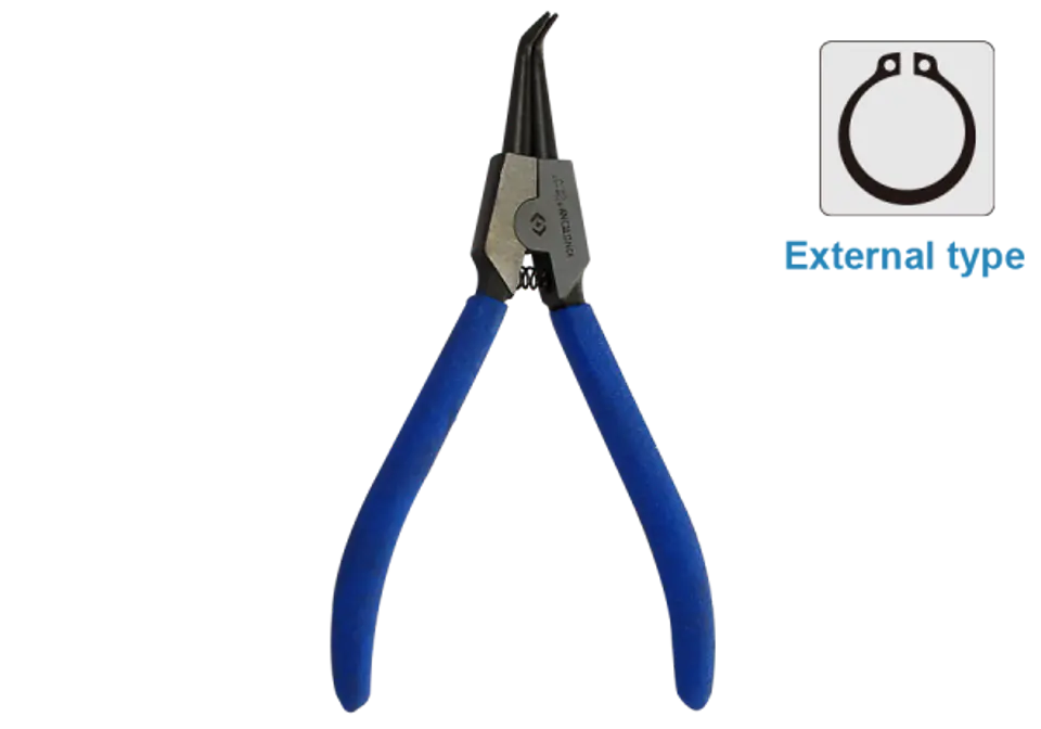 Szczypce do pierścieni segera zewnętrznych wygięte, uchwyt pcv 180mm, zakres pierścieni: 19 - 60mm