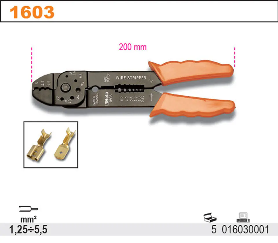 Szczypce do zaciskania nieizolowanych końcówek kablowych otwartych - Włoskiej firmy Beta