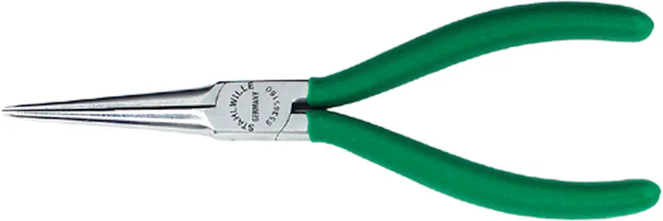 Szczypce pólokragle dla elektroników (iglowe) Dl.160mm Uchw. chromowane Glówki powloka z tworzywa sztucznego o porowatej powierzchni