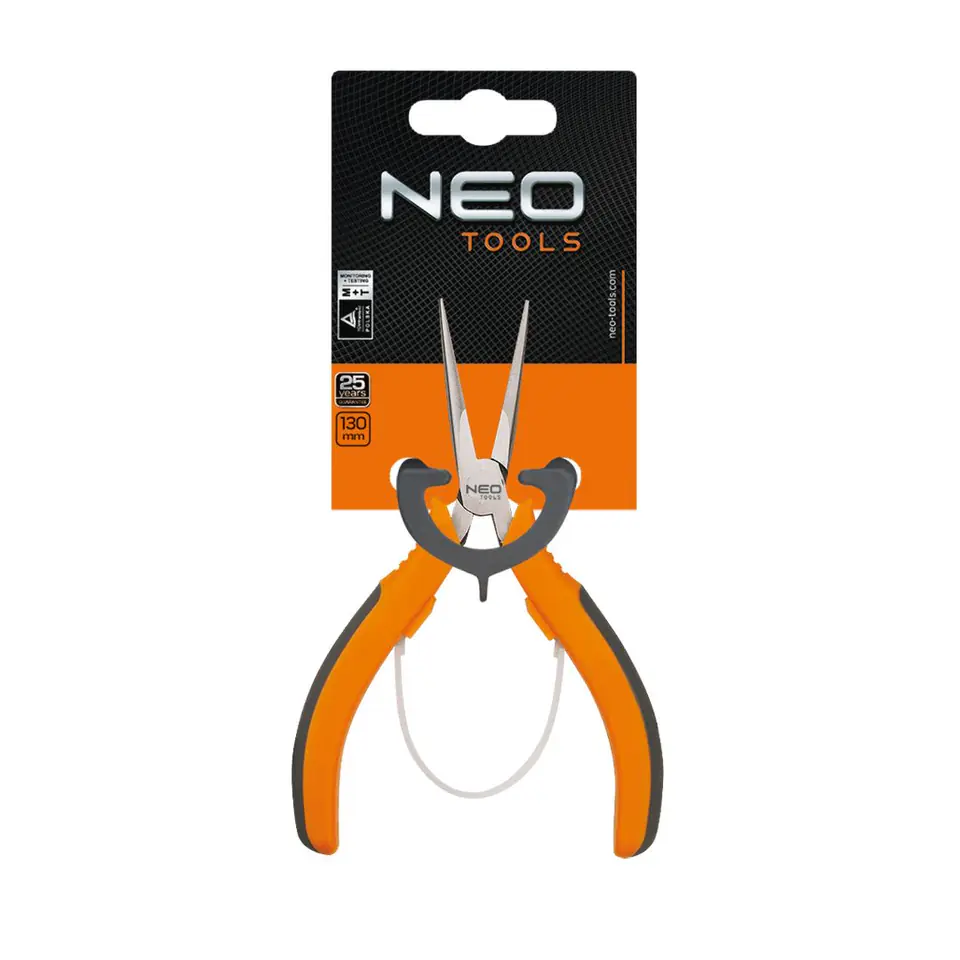 Szczypce precyzyjne wydłużone proste 130 mm, nylonowa sprężyna, uchwyt dwumateriałowy, TÜV