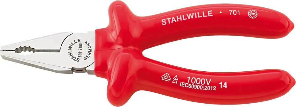 Szczypce uniwersalne VDE Dl.200mm Uchw. chromowane Glówki izolow. zanurzeniowo DIN EN 60900, z izolacja zabezpieczajaca IEC 900 - AC 1000V AC/1000 V