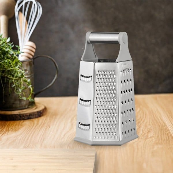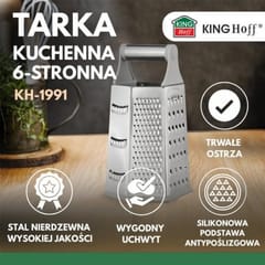 Tarka 6-stronna KINGHoff KH-1991 to idealne rozwiązanie dla osób, które cenią sobie różnorodność i funkcjonalność w gotowaniu. Dzięki sześciu różnym powierzchniom ścierającym z łatwością przygotujesz warzywa, sery, owoce czy czekoladę dokładnie tak, jak lubisz. Wykonana z wysokiej jakości stali nierdzewnej, jest trwała i odporna na korozję, a jej ergonomiczny uchwyt zapewnia komfort nawet przy dłuższym użytkowaniu.