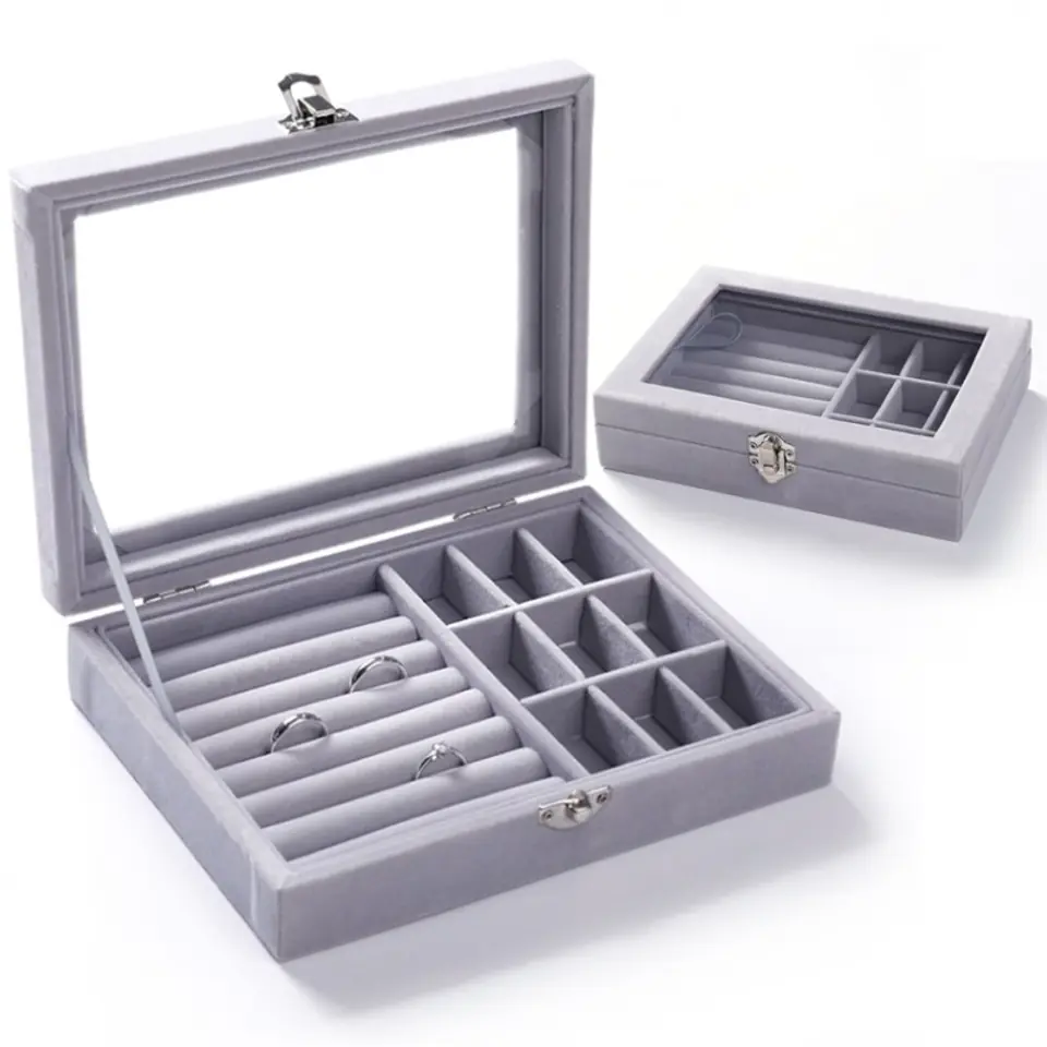 Szkatułka o bardzo praktycznym wnętrzu Podzielona na dwie przestrzenie mogące pomieścić ulubione kolczyki, pierścionki czy bransoletki.Całość zaprojektowana bardzo przemyślanie i dokładnie wykonana. Może być elementem dekoracyjnym ale i bardzo praktycznym pozwalającym na uporządkowanie zasobów biżuterii i dodatków. Szkatułka idealnie nadaje się na prezent dla każdej kobiety:- Wysokiej jakości materiały użyte do produkcji.- Bardzo funkcjonalny układ - pozwala wygodnie przechować dużą ilość biżuterii w jednym miejscu w sposób uporządkowany.- Pokryta welurowym materiałem. Wymiary zewnętrzne:Wysokość - 5 cmSzerokość - 20 cmGłębokość - 15 cm Pokryty welurową tkaniną w kolorze szarym.Środek wyściełany jest miękkim pluszowym materiałem.Szkatułka idealnie nadaje się na prezent.Jest niezwykle praktyczna.UNIKATOWY DESIGN - przypadnie każdej kobiecie