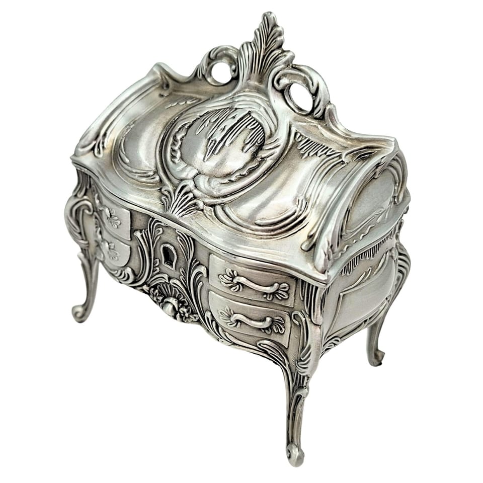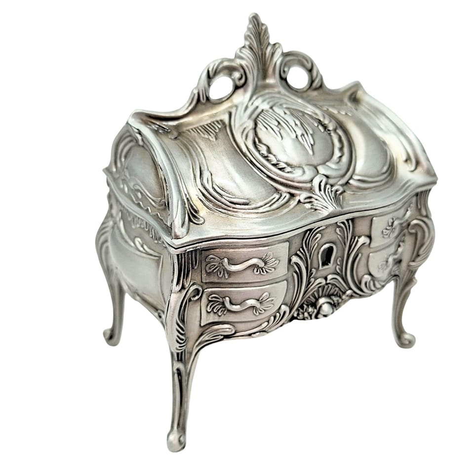 Szkatułka na Biżuterię Metalowa Srebrna Retro - 2056M