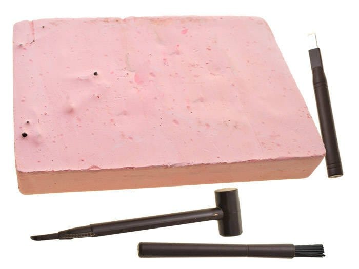 - gipsową bryłkę, w której ukryte zostały kości dinozaura