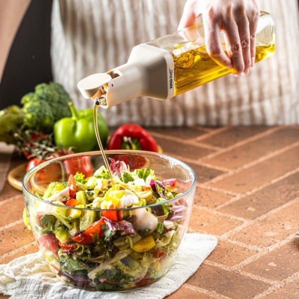 Butelka o pojemności 500 ml i wysokości 29 cm świetnie sprawdza się do oliwy z oliwek, octu balsamicznego, sosu sojowego czy domowych dressingów.