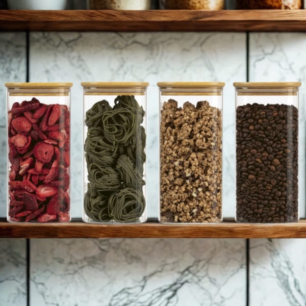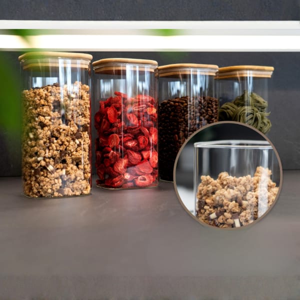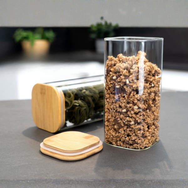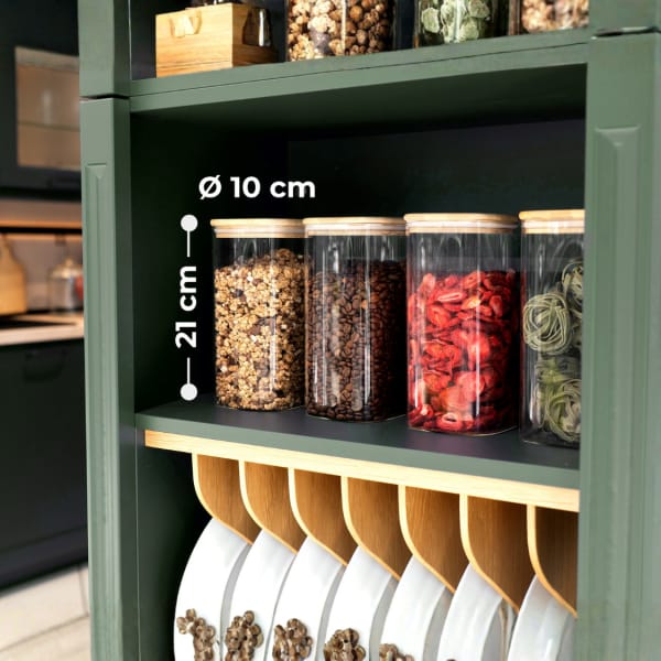 Zestaw 4 szklanych pojemników kuchennych Classbach C-VD 4027Classbach C-VD 4027 to elegancki zestaw czterech pojemników kuchennych o pojemności 1,6 litra każdy, zaprojektowany z myślą o uporządkowanej i estetycznej kuchni. Kwadratowa forma oraz połączenie transparentnego szkła z naturalnymi pokrywami z bambusa tworzą nowoczesny, minimalistyczny wygląd.Pojemniki wykonane są z wysokiej jakości szkła, które jest higieniczne, bezpieczne dla żywności i neutralne dla smaku. Doskonale sprawdzą się do przechowywania produktów sypkich, takich jak makaron, ryż, mąka, płatki śniadaniowe czy kawa.Kwadratowy kształt pozwala lepiej wykorzystać przestrzeń w szafkach i na półkach, dzięki czemu przechowywanie jest bardziej uporządkowane i efektywne niż w przypadku tradycyjnych, okrągłych pojemników.Pokrywy z naturalnego bambusa wyposażone w silikonową uszczelkę zapewniają szczelne zamknięcie, chroniąc zawartość przed wilgocią oraz utratą świeżości. Transparentne ścianki ułatwiają szybkie sprawdzenie zawartości bez otwierania pojemnika.W zestawie znajdują się również naklejki i marker, które umożliwiają opisanie przechowywanych produktów i jeszcze lepszą organizację przestrzeni.Najważniejsze funkcje Classbach C-VD 4027:Zestaw 4 pojemników (4 × 1600 ml)Kwadratowa, oszczędzająca miejsce konstrukcjaWysokiej jakości szkłoPokrywa z naturalnego bambusaSilikonowa uszczelkaSzczelne przechowywanieTransparentna konstrukcjaMożliwość opisywania pojemników (naklejki + marker)Do produktów sypkich i spożywczychMożliwość mycia w zmywarce (pojemniki)Przechowywanie bez użycia plastikuDlaczego warto kupić zestaw pojemników Classbach C-VD 4027?Lepsze wykorzystanie przestrzeniKwadratowy kształt pozwala ustawić pojemniki bliżej siebie i maksymalnie wykorzystać miejsce w kuchni.Porządek i spójny wyglądJednolity zestaw wprowadza estetykę i harmonię do szafek oraz na blat kuchenny.Świeżość produktówSzczelne zamknięcie chroni zawartość przed wilgocią i utratą aromatu.Łatwa organizacjaTransparentne ścianki i możliwość podpisania pojemników ułatwiają szybki dostęp do produktów.Wymiary (ok. szer. x wys. x gł.)Pojemnik: 100 × 210 × 100 mmOpakowanie: 250 × 257 × 250 mm...